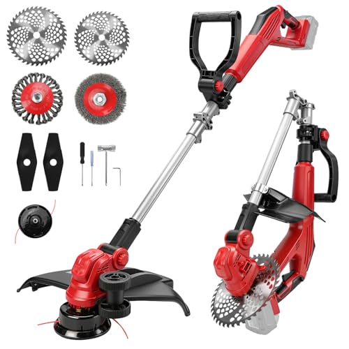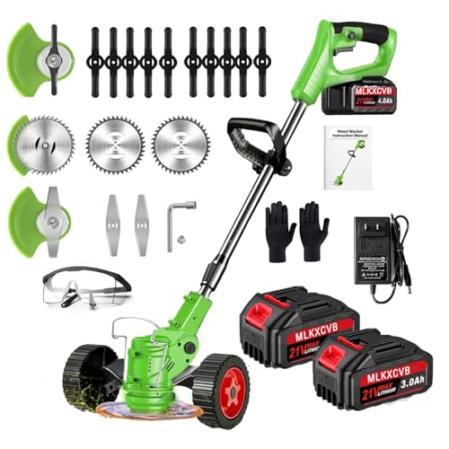 Cordless Weed Wacker, 21V Electric Weed Eater Battery Powered, 2X 3000mAh Brush Cutter Edger with 3 Type Blades, 2.6 LBS Lightweight Foldable Grass Trimmer for Lawn & Garden Yard Landscaping