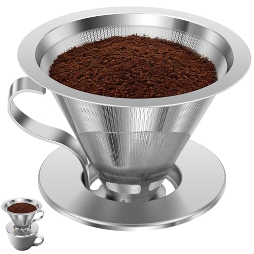 Stainless Steel Coffee Filter Reusable Coffee Dripper Coffee Filter Holder, Pour Over Coffee Dripper, Slow Drip Paperless Coffee Filter, Stainless Steel Pour Over Coffee Maker (Silver)