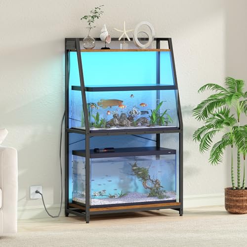 Heybly 20-29 Gallon Fish Tank Stand, Aquarium Stand with Drawer, Power Outlet, Heavy Duty Metal Frame, for Fish Tank, Turtle & Reptile Terrarium, 31.5" x 15.7" Top, 330lbs, Black HAS001BK