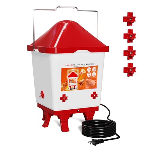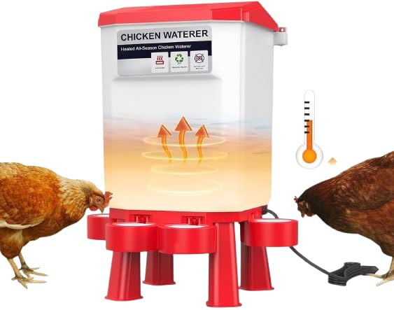 Heated Chicken Waterer, Heavy Duty Plastic Water Container, Fresh Water Solution for Poultry, Leak-Proof Design with Double-Layer Insulation (Red, 7L)