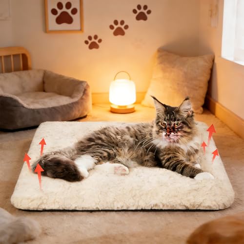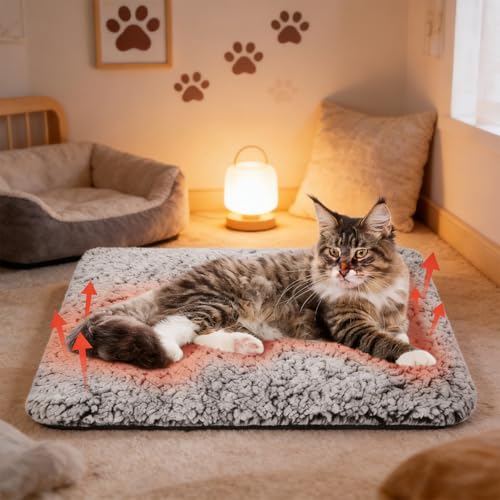 Pecute Cat Heating Pad, Heated Cat Bed with Auto Temp Control, Dog Heated Pad with Chew Resistant Cord, Heated Cat Mat Blanket, Washable Waterproof Indoor Heating Pad for Cats Dogs