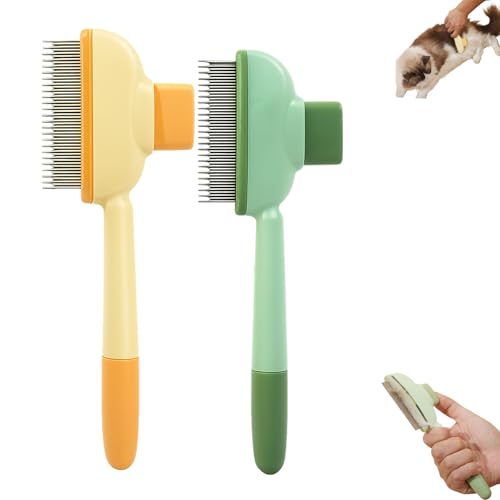 Rattmety Pet Flea Comb for Cats & Dogs, 2PCS Pet Hair Removal Comb, Lice Comb Tick Remover w/Release Button, Stainless Steel Dog Grooming Supplies Dematting Tool for Small, Medium & Large Pets
