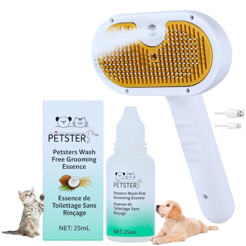 Petsters Cat Steam Brush for Dogs & Cats 鈥 with Wash-Free Grooming Essence (Brush + Wash Free Grooming Essence)