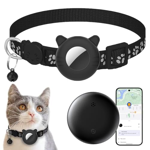 Airtag Cat Collar Breakaway, Odokele Reflective Cats Collars with Apple Air Tag Holder for Kitten, Cat GPS Tracker Adjustable Collars with Safety Quick Release Buckle for Kitties and Puppies - Coffee