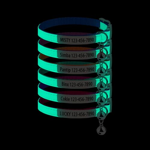 Personalized Cat Collar, Custom Embroidered Cat Collars with with Name and Phone Number, Nylon ID Collar for Cat or Kitten with Breakaway Safety Release Buckle with Bell
