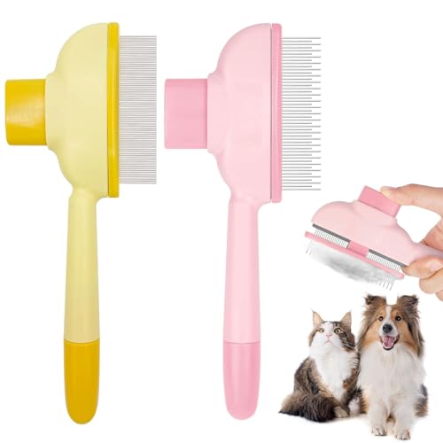 CAVLA Pet Hair Remover Comb, Cat Brush with Release Button Self-Cleaning Pet Grooming Brush for Shedding Tangles & Removal Loose Hair for Dogs Cats (Plain)