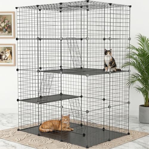 Cat Enclosures, 3-in-1 Cat Tower Tent with Tunnel/Pop Up Cube,Climbing Cage Outdoor Catio Portable Playpen Play Tents for Cats Kitten and Small Animals (Grey)