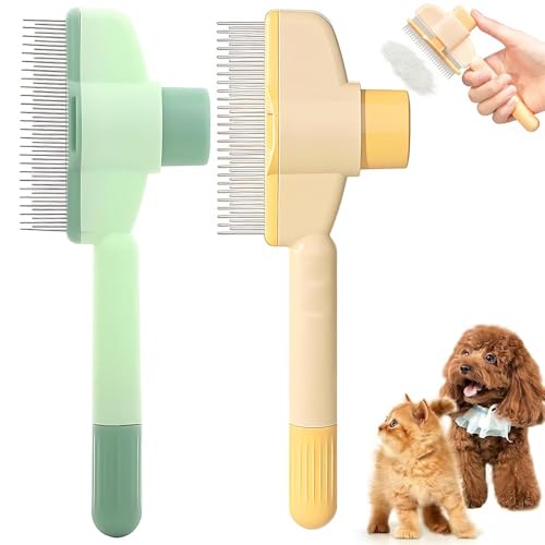 Marchul 2Pcs Pet Comb Flea Comb Set for Cats Dogs, Cat Grooming Brush with Release Button and Stainless Steel Round Teeth, Self-Cleaning Dog Combs for Removing Pet Hair, Knots & Loose Fur, White