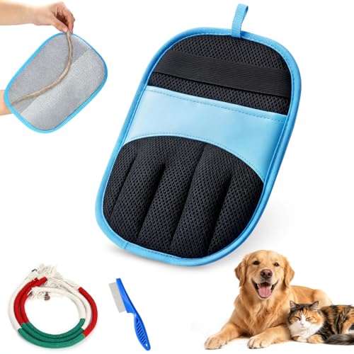 Cat Brush Grooming Kit 5pcs - Cat Brush for Shedding & Matted Fur, Self-Cleaning Brush with Flea Comb for Indoor Cats, Brush for Long-Haired Cats, Blue