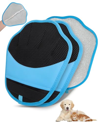 Upgraded Pet Grooming Gloves - Gentle Deshedding Brush Gloves, Pet Hair Remover - Suitable for Cats, Dogs and Pets with Long or Short Hair - 1 Pair (Blue)