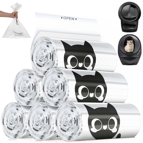 SEREINEY 60 Count Drawstring Cat Litter Bags for Most Auto Self-Cleaning Litter Box, Cat Litter Box Liners, Replaced Pet Waste Bags