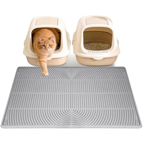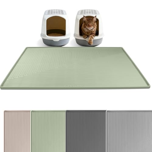 40"x28" Cat Litter Mat Lanstics Cat Mat for Litter Box Large Silicone Litter Box Mat for Kitty Scatter Control Floor Protect (Khaki)