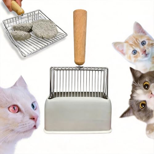 Cat Litter Scoop, Beach Mesh Shovel,Practical Beach Deep Shovel, Stainless Steel 3.8mm Mesh Scooper,Heavy Duty Litter Scooper, Kitten Poop Sifting Cleaning Scoop(Color:Wood Handle)