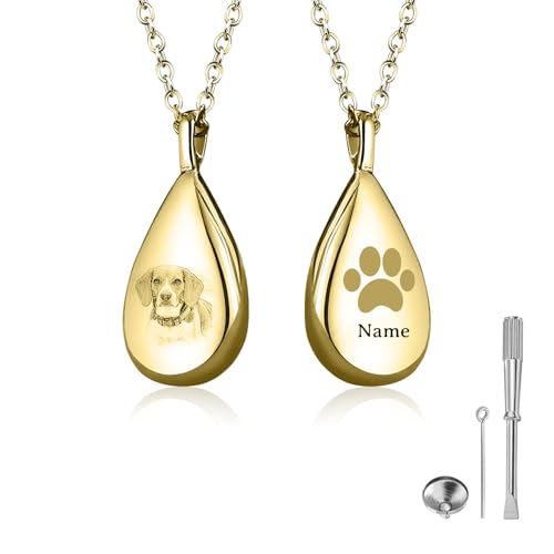 QWBV NELO Teardrop Pet Remembrance Urn Necklace for Ashes for Women, Personalized Cat Dog Urns for Ashes in Photo & Name in Silver, Gold, And Rose-Gold,Gift for Deceased Pet Owners