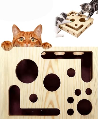 Cat Scratch Puzzle Enrichment Box with Ball Sandpaper Inside, Interactive Wooden Nail File Toy & Scratcher for Indoor Cats Box Feline Puzzle Fun and Boxes Game