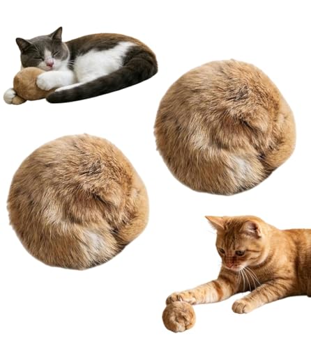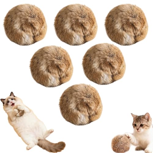 Liahelianx Handmade Rabbit Fur Ball Cat Toy with Catnip - Soft,Fluffy Pom Pom for Chasing & Kicking,Interactive Play for Indoor Exercise,Kitten Entertainment, and Bonding (Brown2pcs)