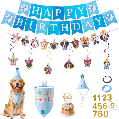 Dog Birthday Party Supplies Set - Reusable Birthday Bandana Scarf & Hat with Bow Tie, Cute Numbered Accessories for Small Medium Large Dogs, Includes Banner & Balloons for Puppy PAWTY (Pink)