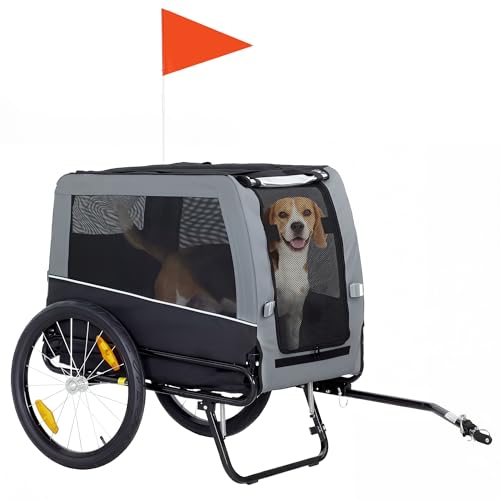 Aosom Dog Bike Trailer, 2-in-1 Dog Wagon Pet Stroller for Travel with Universal Wheel Reflectors Flag, for Small and Medium Dogs
