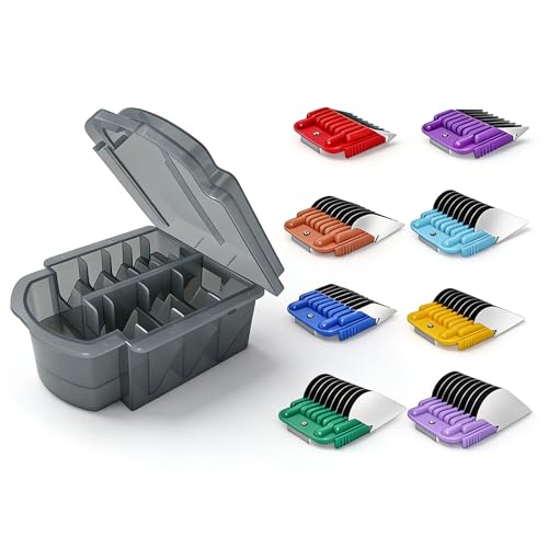 8-Color Stainless Steel Guide Comb Set (1/8" to 1" / 3mm to 25mm) Compatible with Andis, Oster A5, Wahl KM10 Clippers | Fits #10, #15, #30 Detachable Blades (8 Pack)