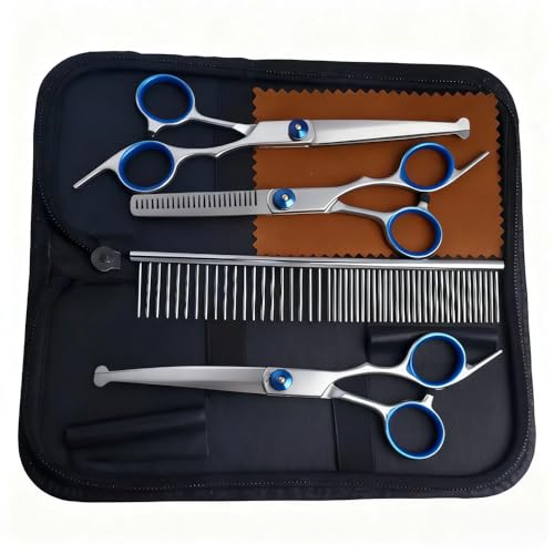 Pet Grooming Scissors Set for Dogs & Cats - Professional Dog Grooming Tools with Curved Scissors, Thinning Shears & Pet Hair Cutting Shears, Essential Pet Grooming Kit