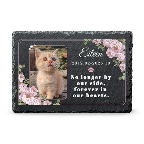 MrMrKura Pet Memorial Stone for Cats Dogs Headstone Pet Tombstone Grave Markers with Paw Print, Sympathy Poem in Lawn, Garden, Backyard, Pet Loss Gifts