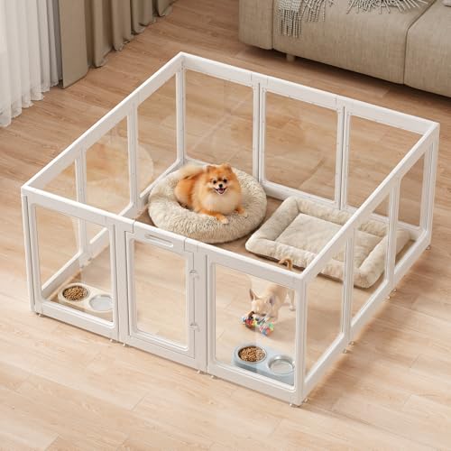 Gupamiga Pet Playpen for Dogs Heavy Plastic Puppy Exercise Pen Indoor Outdoor Small Pets Fence Puppies Folding Cage for Puppies and Small Dogs House Supplies (PPW-White-6)