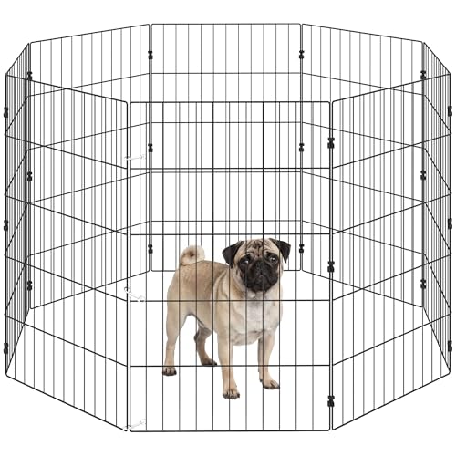 VEVOR Dog Playpen, 8 Panels Foldable Metal Dog Exercise Pen with Bottom Pad, 24" H Pet Fence Puppy Crate Kennel with Ground Stakes, Indoor Outdoor Dog Pen for Small Medium Pets, for Camping, Yard