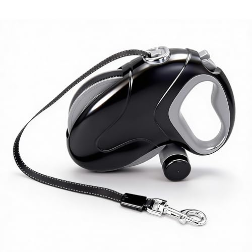 BKINDTOPET 4-in-1 Retractable Dog Leash 16ft with LED Light, Poop Bag Dispenser & Bags 鈥 Heavy Duty, Tangle-Free Leash for Small & Medium Dogs up to 66lbs, One-Button Brake & Anti-Slip Handle (M)
