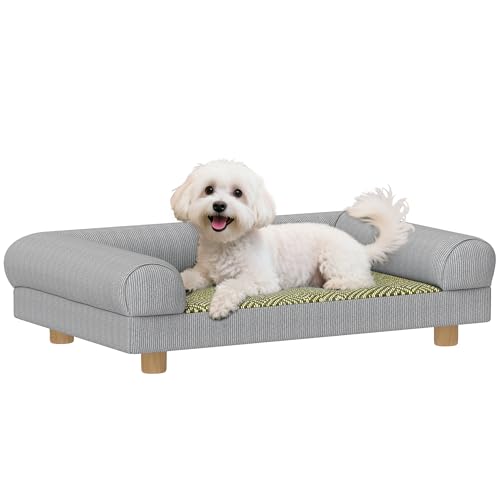 PawHut Dog Sofa, Cat Couch with Removable and Washable Cover, Elevated Pet Cat Sofa for Miniature Dogs, Wooden Legs, Grey