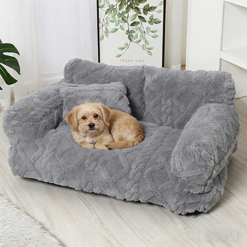 Dog Sofas and Chairs/Dog Beds with Soft Velvet Fabric/Sturdy Pet Sofa Bed/Wooden Frame Cat Bed/Dog Couch with Washable Comfortable Cushion for Small Dog Rest Using (Grey)