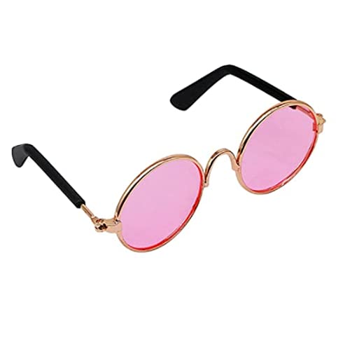 Cat Retro Sunglasses, Metal Circular Glasses Props Accessories Cosplay Glasses for Cat & Puppy Dog Rabbit1 Pcs Pink Beautiful Design