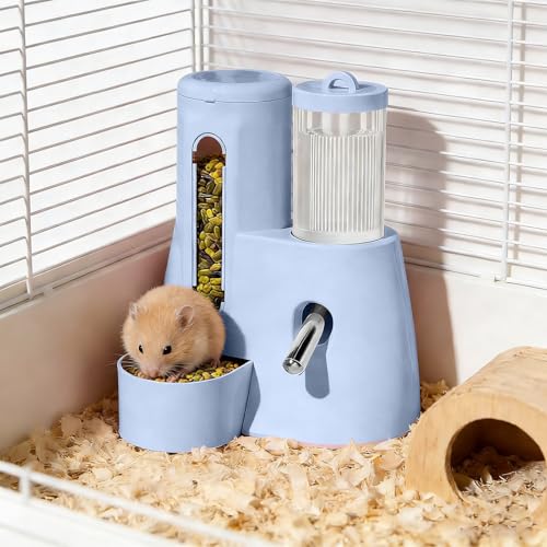 Hamster Food Dispenser with Baffle Design, Large Transparent Capacity, Durable Automatic Small Animal Feeder for Hamsters, Guinea Pigs, Bunnies and Other Small Pets