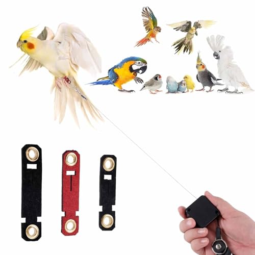 LinamHoz Retractable Bird Leash, with 3 Sizes of Foot Rings Parakeet Flying Ankle Harness Parrot Leg Leash, Suitable for Various Birds (Black)