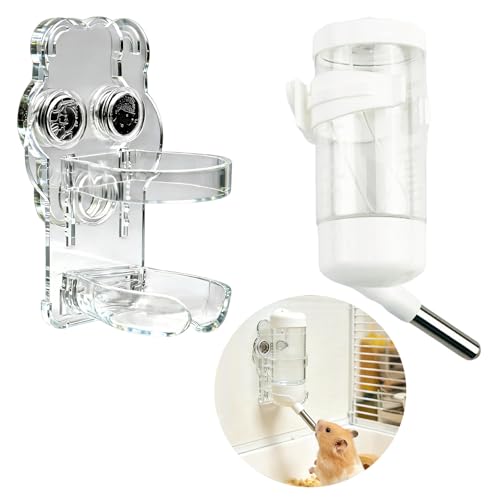 Shengsenfu 2 in 1 Hamster Water Bottle, Food Container,Large Capacity No Drip Container, Leakproof Drinking Feeding Accessories for Small Animals Guinea Pig Rabbits