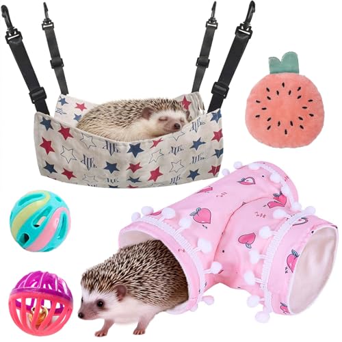 CECING 3 Pieces Small Pet Cage Hammock Hanging Tunnel Small Animals Hanging Bed Cage Guinea Pig Hammock Cage Accessories Set for Ferret Rat Chincilla Hammock Sleeper