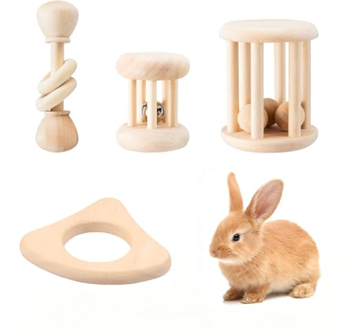 DBNESS 4 Pcs Bunny Chew Toys for Teeth, Hanging Rabbit Chewing Toy Treats with Timothy Grass & Natural Apple Wood, Improve Small Rodent Dental Health for Guinea Pig Hamster Chinchilla Rat Gerbil