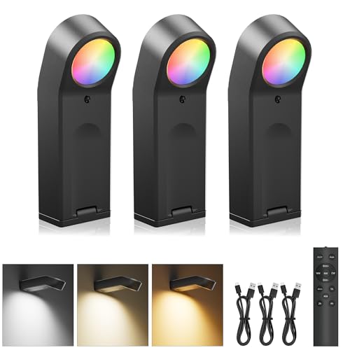 Homelist Picture Lights for Wall, 2200mAh Rechargeable Magnetic Poster Lights with Remote, 3 Color Temps & 12 RGB Modes, Dimmable Timer Art Display Light for Frame, Artwork, Gallery - 3 Pack Black