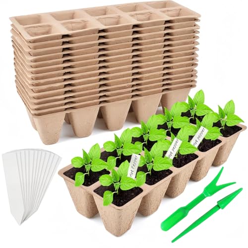 100 Pack 3.15 Inch Seed Starter Peat Pots, Transplant Seedlings Pots with Drainage Holes, Organic Biodegradable Nursery Pots for Plant Starters Seedlings Saplings, with 100 Plastic Plant Markers
