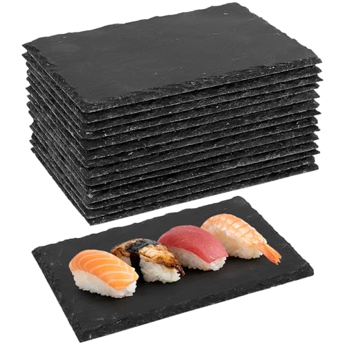 Navaris Natural Slate Serving Plates - Set of 6 Place Mat Serving Trays - Large Rectangular Stone Table Mat Serving Platter Tiles - 15" x 11"