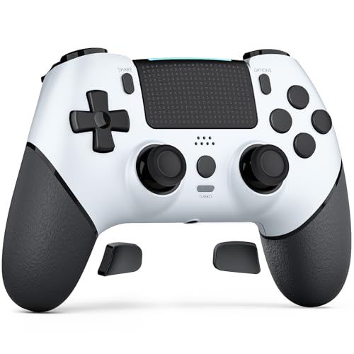 2 Pack Wireless Controller for PS4, LED Backlit Controllers for PS4/Pro/Slim, 1000mAh Battery, Double Shock 6-Axis Motion Sensor, Adjustable RGB Backlight, White+Black