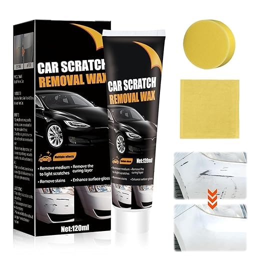 Professional Automotive Scratch Repair Kit | 120ml Fast-Acting Polish for Multi-Surface Use on Cars & Motorcycles | Includes Buffing Sponge & Microfiber Cloth for Deep-Cleaning Scratch Removal