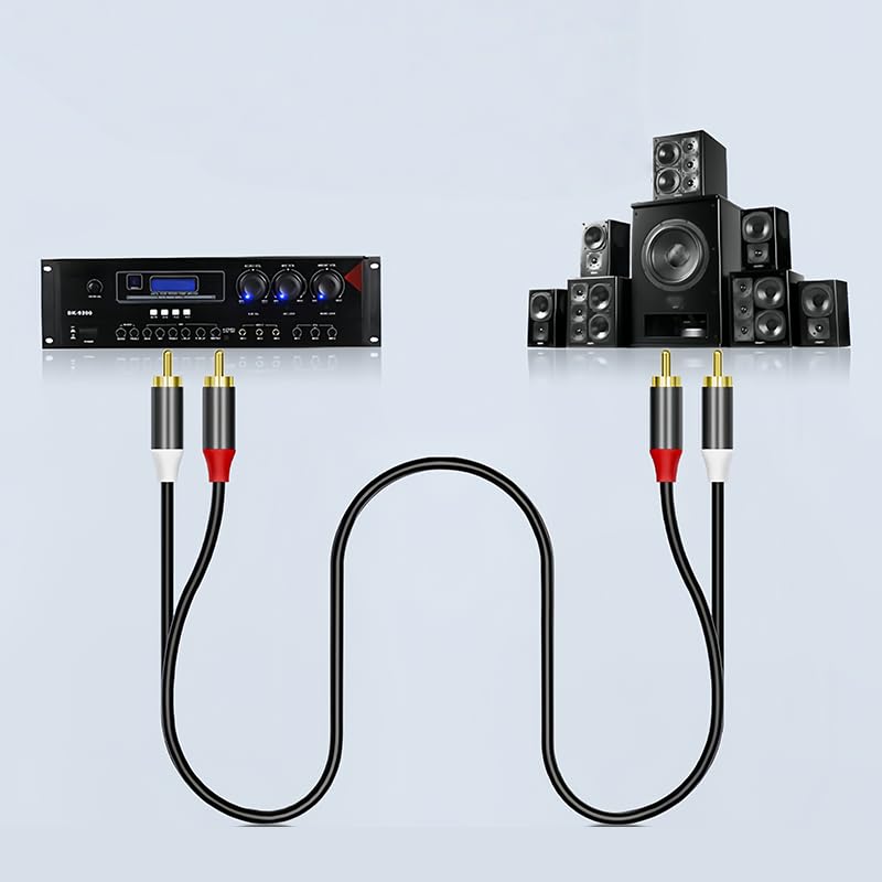 FosPower (0.9m / 3ft) 2 RCA M/M Stereo Audio Cable [24K Gold Plated | Copper Core] 2RCA Male to 2RCA Male [Left/Right] Premium Sound Quality Plug