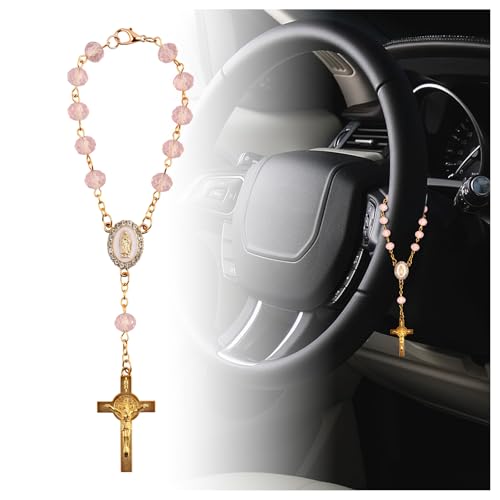 Cabilock Car Rosary Pendant Car Rear View Mirror Hanging Accessories Rosary Bead Cross Chain Ornament for Rearview Mirror Decora