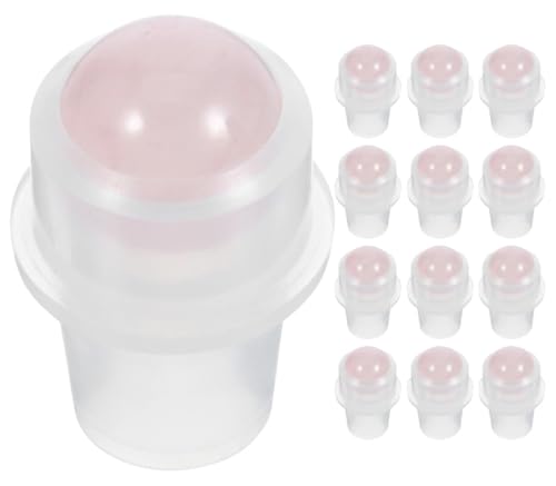 WADY 12 Pcs Essential Oil Roller Ball Replacements for 10ml Roller Ball Bottles - 16mm Gemstone Roller Ball Tops for Roll On Bottles, DIY Roll On Perfume | Pink Stone Roller Ball Bottle Caps