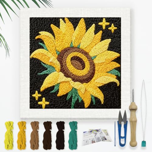 JSRQT Punch Needle Embroidery Starter Kits,Rug Hooking Kit for Kids and Adults Beginners,Handcraft Punch Needle Kits with Embroidery Hoops,Flowers and Plants Pattern
