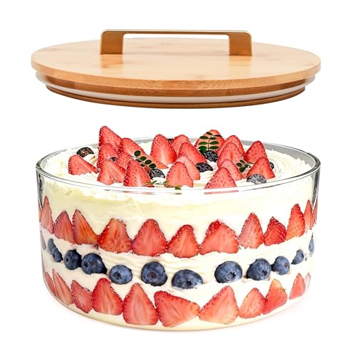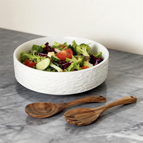 SEICASAYA 12-Inch Large Ceramic Salad Bowl Set with Wooden Servers, Decorative Serving Bowl with Ribbed Design for Pasta, Fruit (White)
