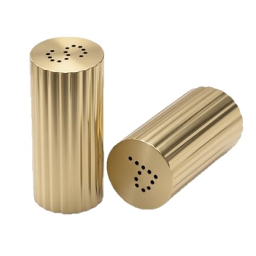 Salt and Pepper Shakers Set, Gold Spice Dispenser, with Stainless Steel Lids & Glass Bottom, Seasoning Shaker, for Kitchen Cooking, RV, Camp, BBQ, Refillable Design, Modern Kitchen Accessories