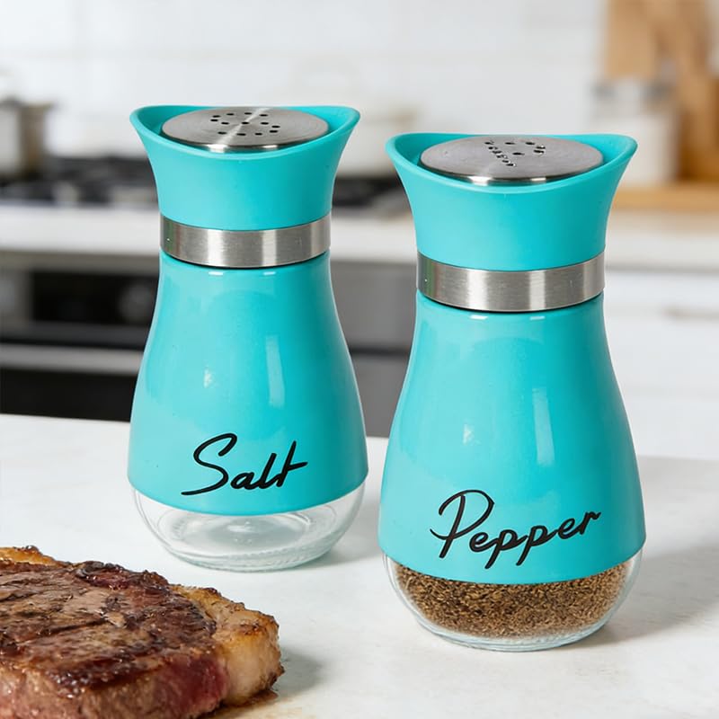 Gala Houseware 2 Pack Salt and Pepper Shakers, 4.6 oz Salt Shaker Spice Dispenser, Stainless Steel with Glass Bottoms, Refillable Design, Ideal for Kitchen, Dining Table, Camping, and BBQs