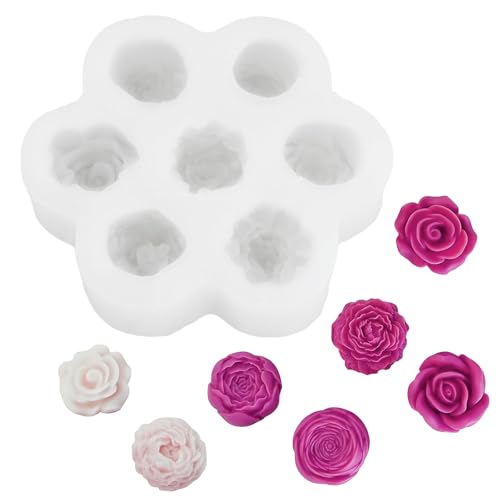 Nivofu 2pcs Flower Silicone Molds, 7 Cavity 3D Rose Peony Cake Mold, DIY Handmade Soap Mould for Jelly Chocolate Pudding Fondant Candle Cake Decorating