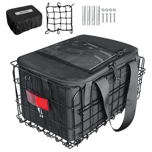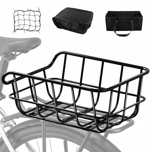 Rear Bike Basket - Large Bicycle Rear Basket with Cargo Net and Waterproof Cover, Wire Bike Baskets Rear Large Capacity (NO Bike Rack Include)